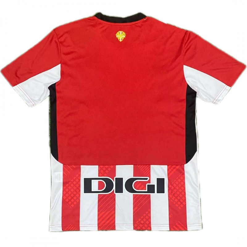 The Athletic Club 2024-25 home jersey has a traditional classic red and white stripe design, with a subtle pattern present inside the red stripes.