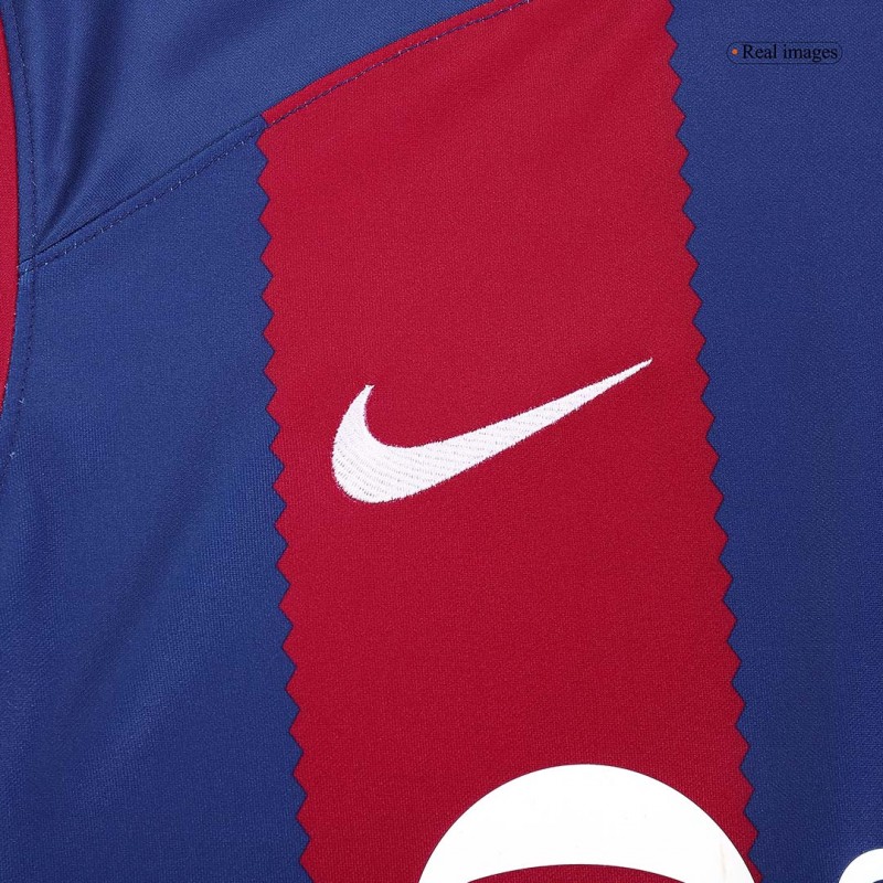 In terms of colors, the Nike Barcelona 23-24 home jersey features the club's classic maroon and blue.
