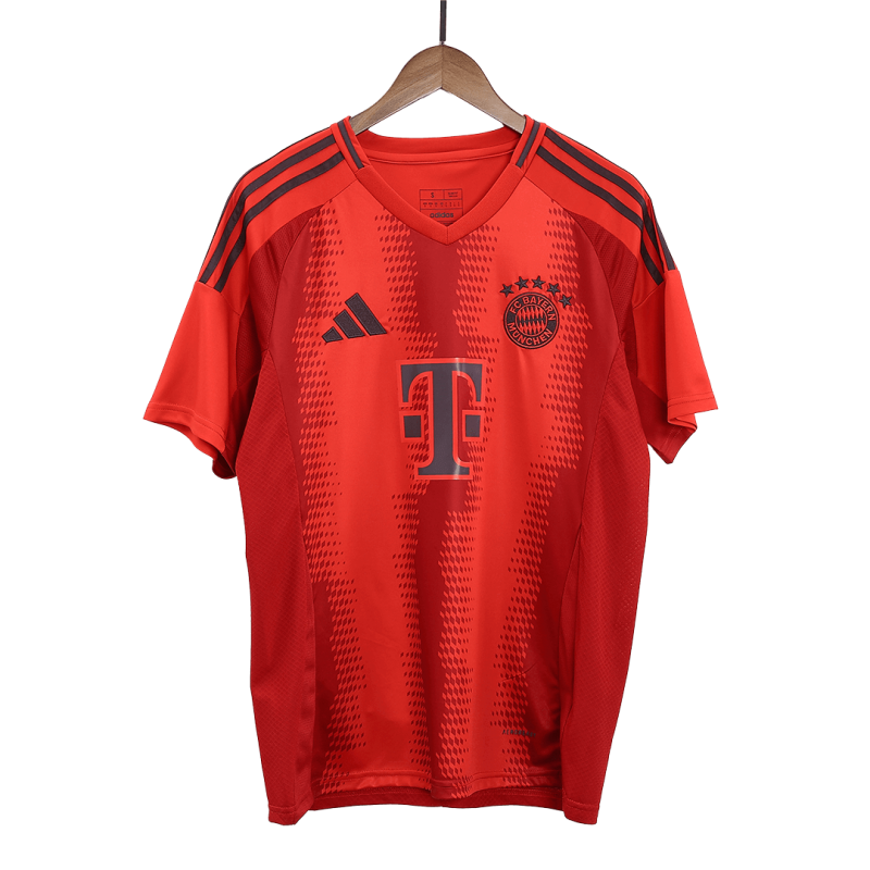 The Bayern 2024-2025 home kit "features three different shades of red to capture the identity, emotion, and drama of the game" and as a homage to the club's trebles won in its history.