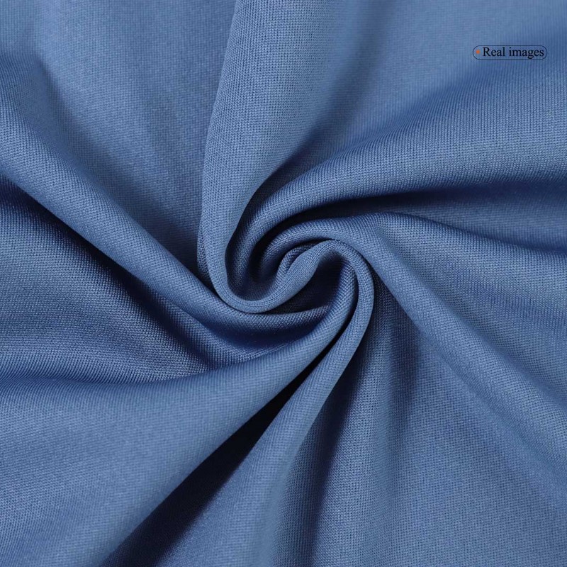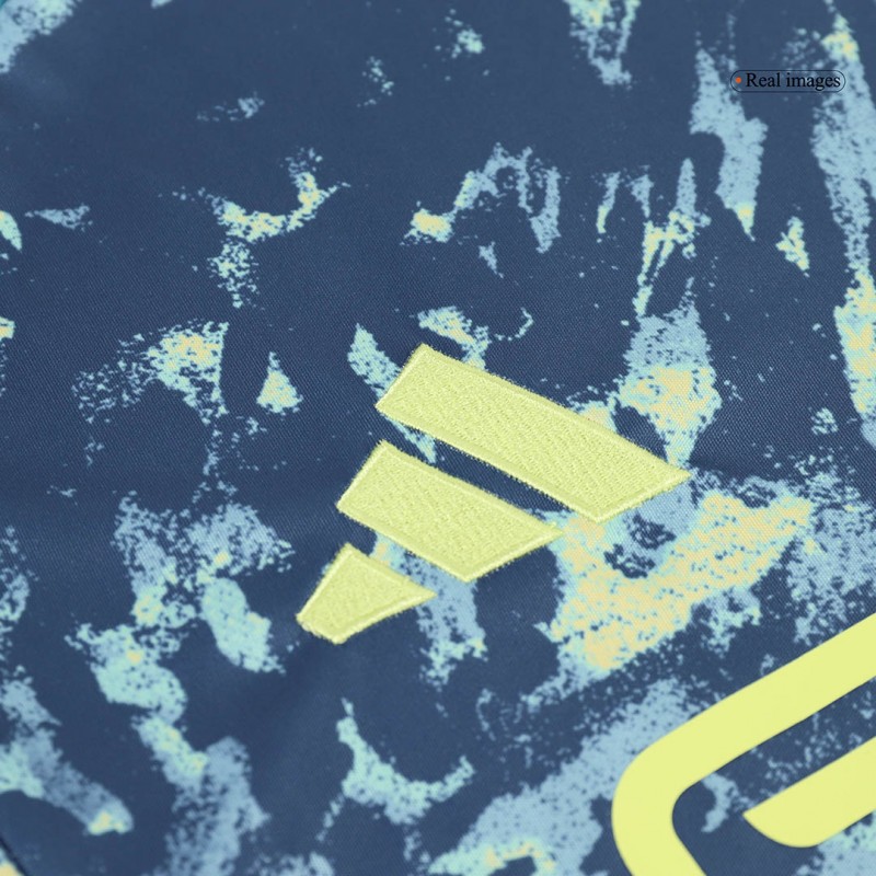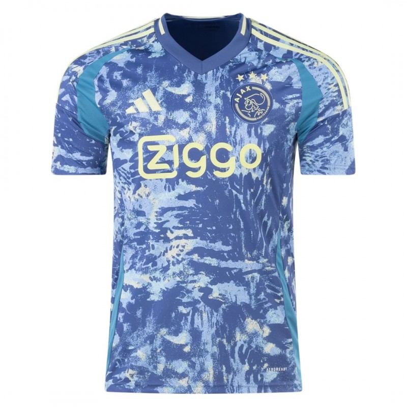 The new AFC Ajax 2024-25 away football jersey is predominantly "Crew Blue," combined with "Pulse Yellow" for the logos.