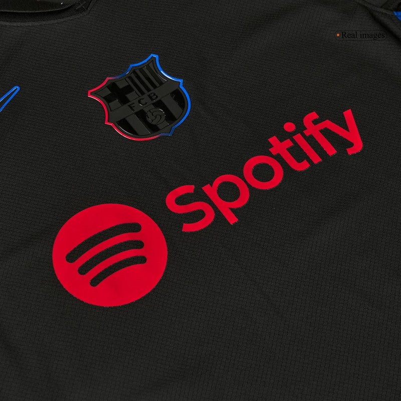 The Spotify logo of the FC Barcelona 2024-25 away football shirt is red.