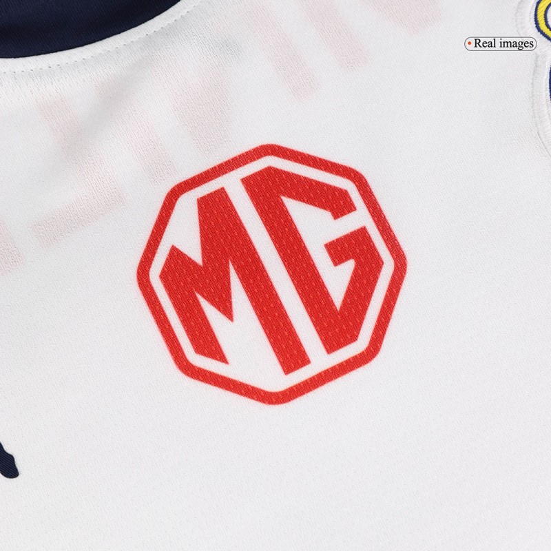 The Chivas 2024-2025 away shirt is mainly white with navy/red logos and applications.