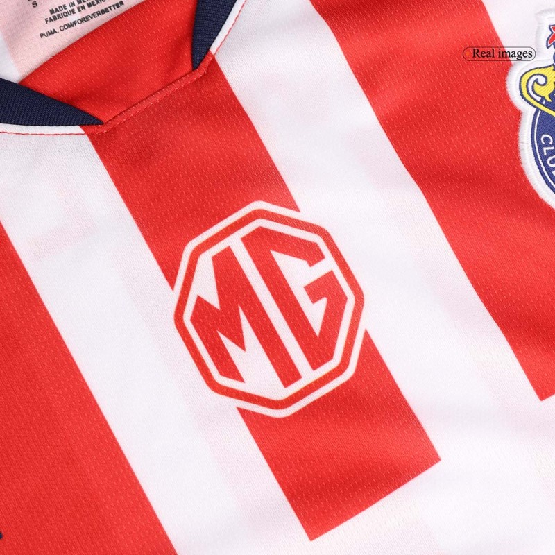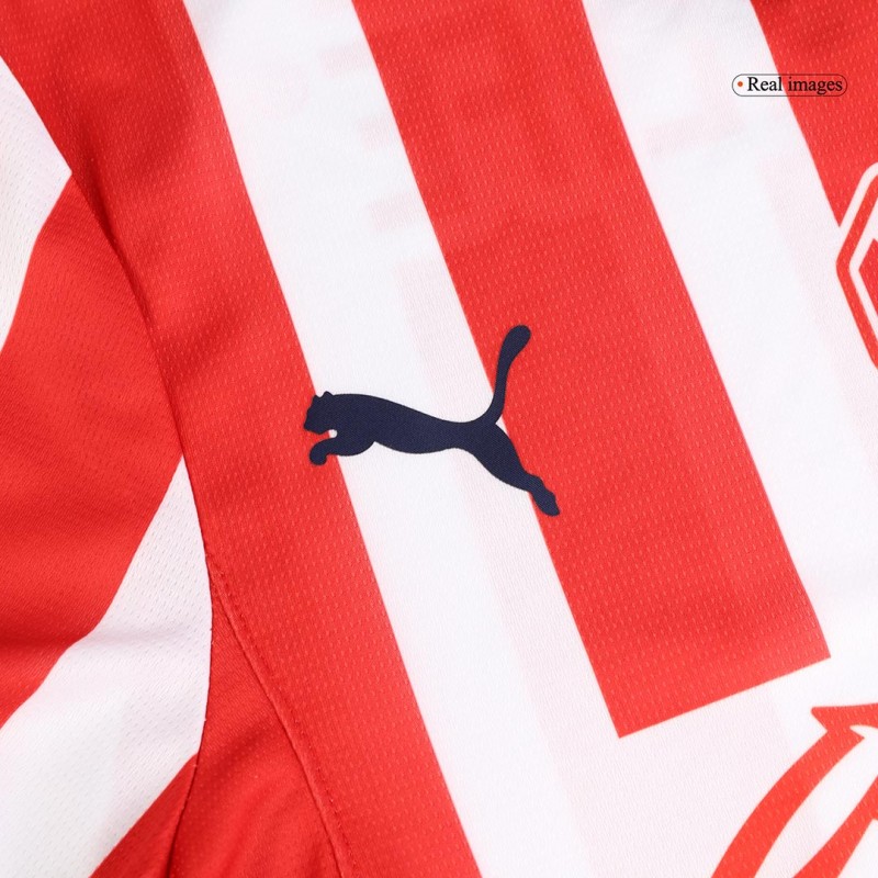 The Chivas 2024-25 home football shirt still has the traditional red and white striped design.