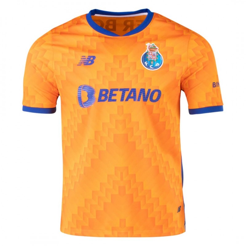 The Futebol Clube do Porto 2024-2025 away jersey is predominantly orange with a 1990s-inspired all-over graphic.