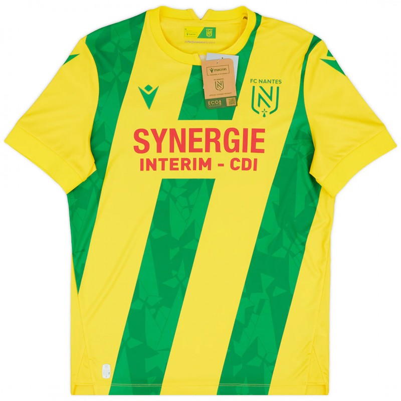 Yellow shorts and socks complete the new Macron FC Nantes 2024-2025 home uniform.