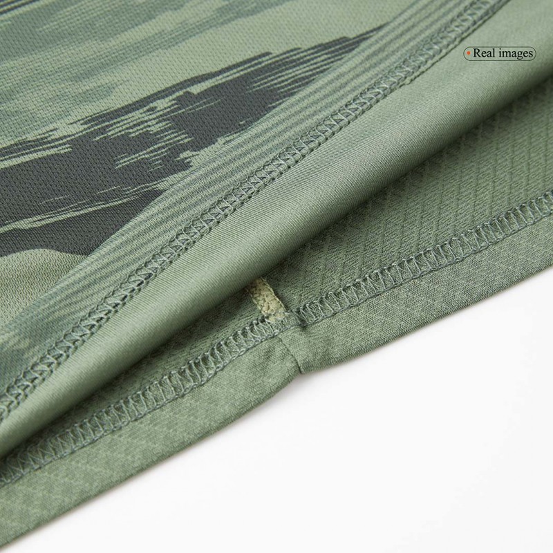 The Celtic FC 2024-25 third shirt is predominantly military green with unique camo graphics.