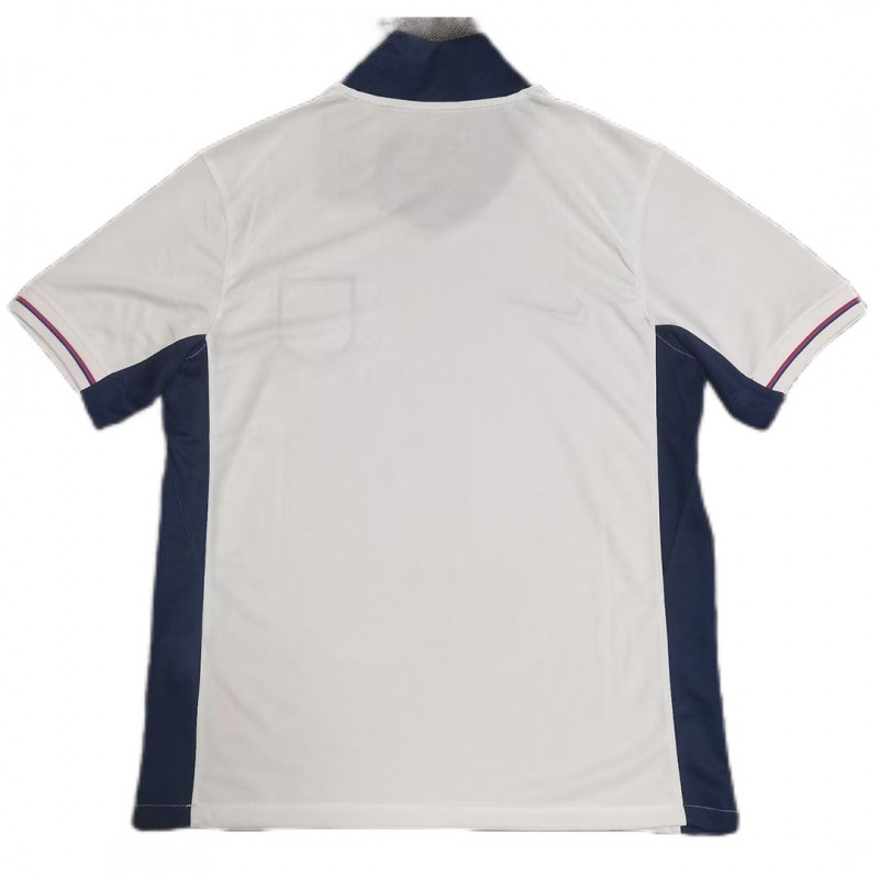 The Nike England 2024 football shirt combines the country's classic white with a dark navy, plus maroon/light red detailing.