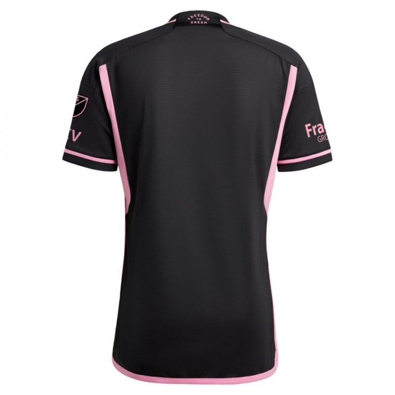 The Adidas Miami 2024 away shirt is predominantly black, with all other details and logos held exclusively in pink.