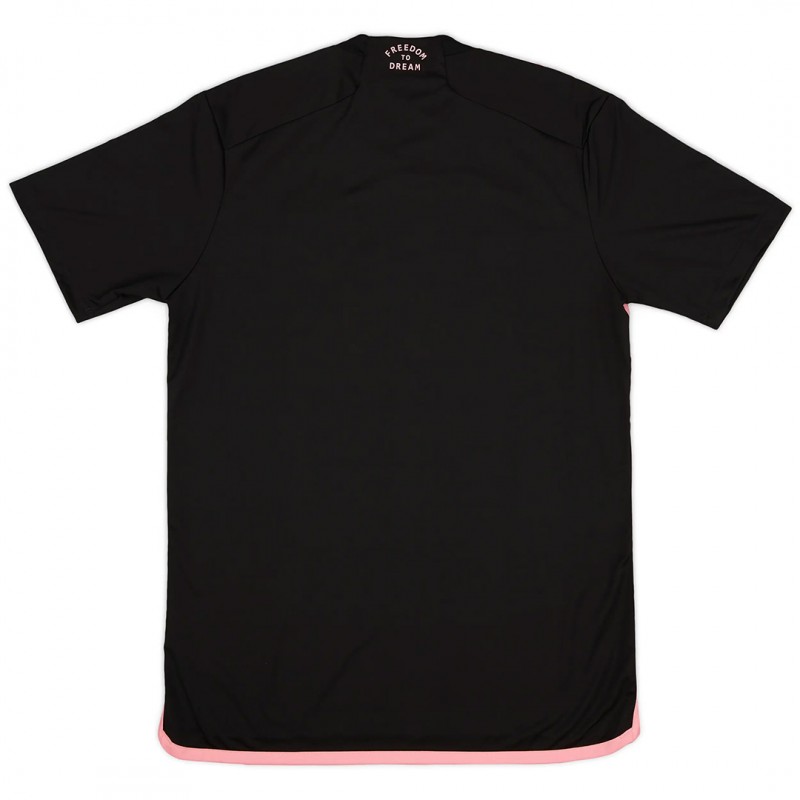 The Miami 2023 away shirt is predominantly black, with all other details and logos held exclusively in pink.