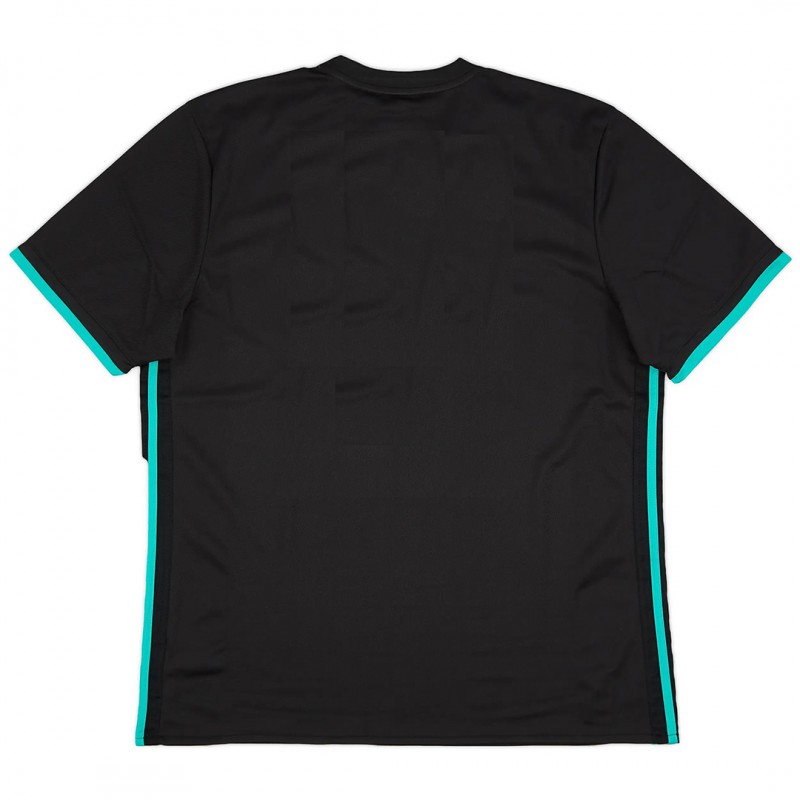 In line with the home and third jerseys, the black base of the Real Madrid 17-18 away shirt gets combined with bright teal details.