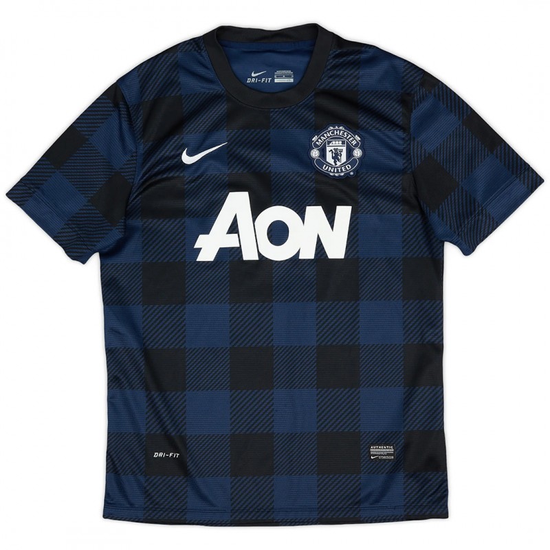 The Manchester United 2013-14 Away Kit features a 'tablecloth' design similar to last season's home shirt and comes in navy/black.