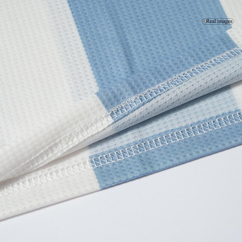 The new Adidas x Argentina 50 Years anniversary kit features a traditional white and light blue striped design, combined with the Trefoil logo and AFA lettering (replacing the full crest) on the left chest for a simple and classic look.