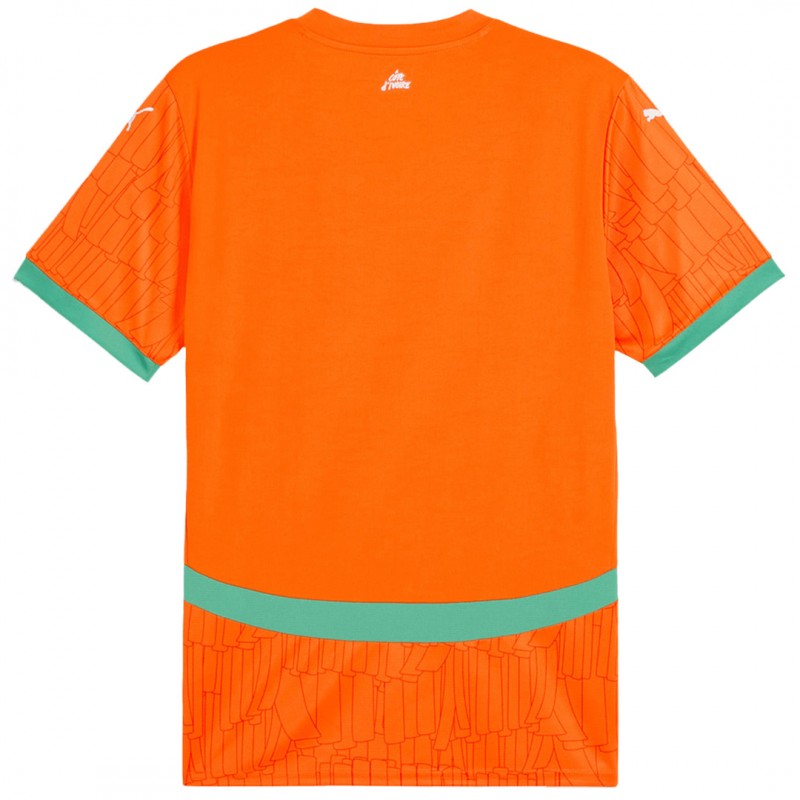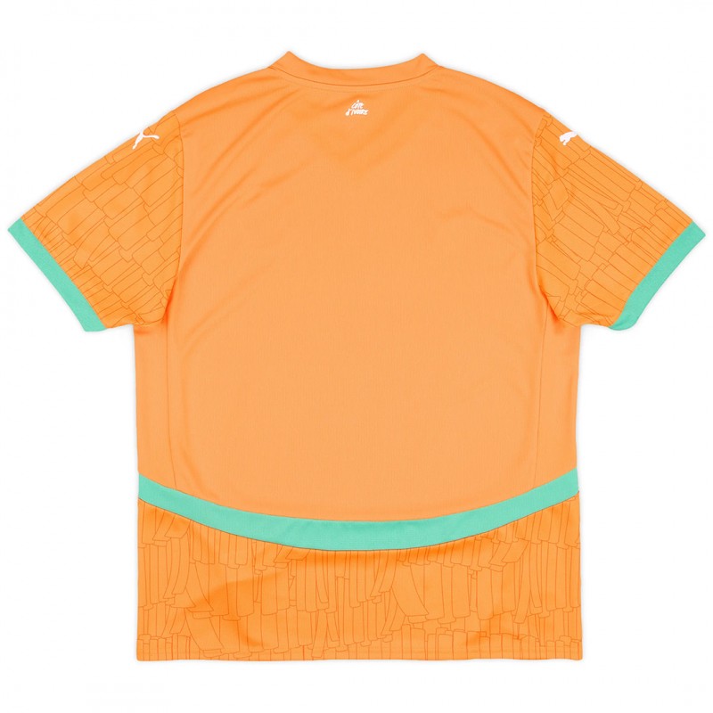 The Côte d'Ivoire 2024 home football shirt features the traditional bright orange main color, combined with green and white.