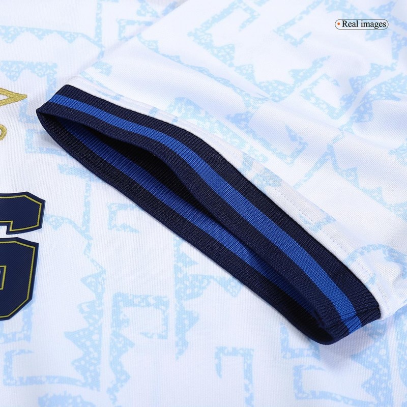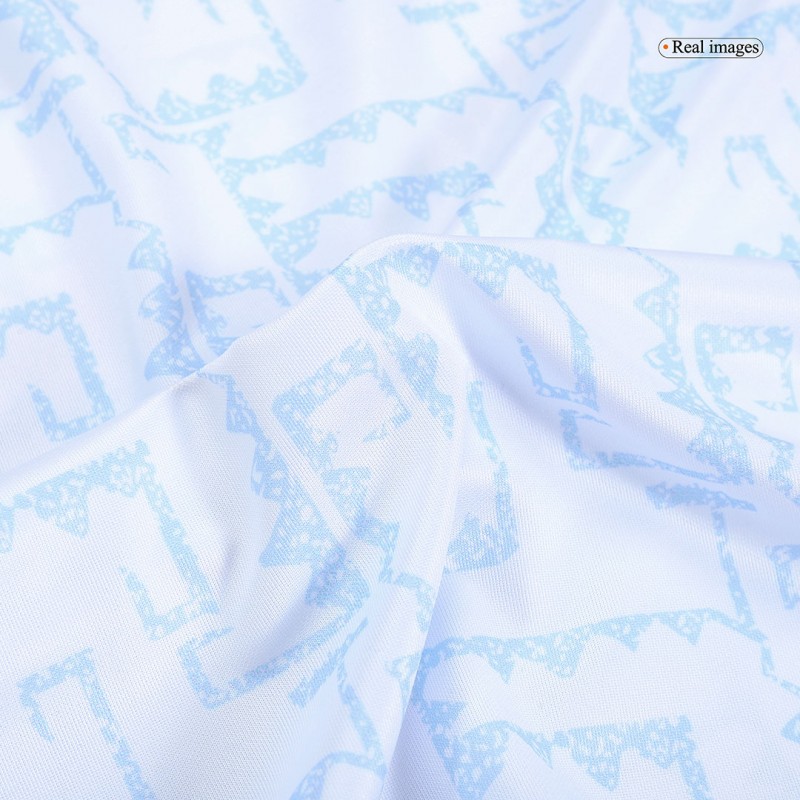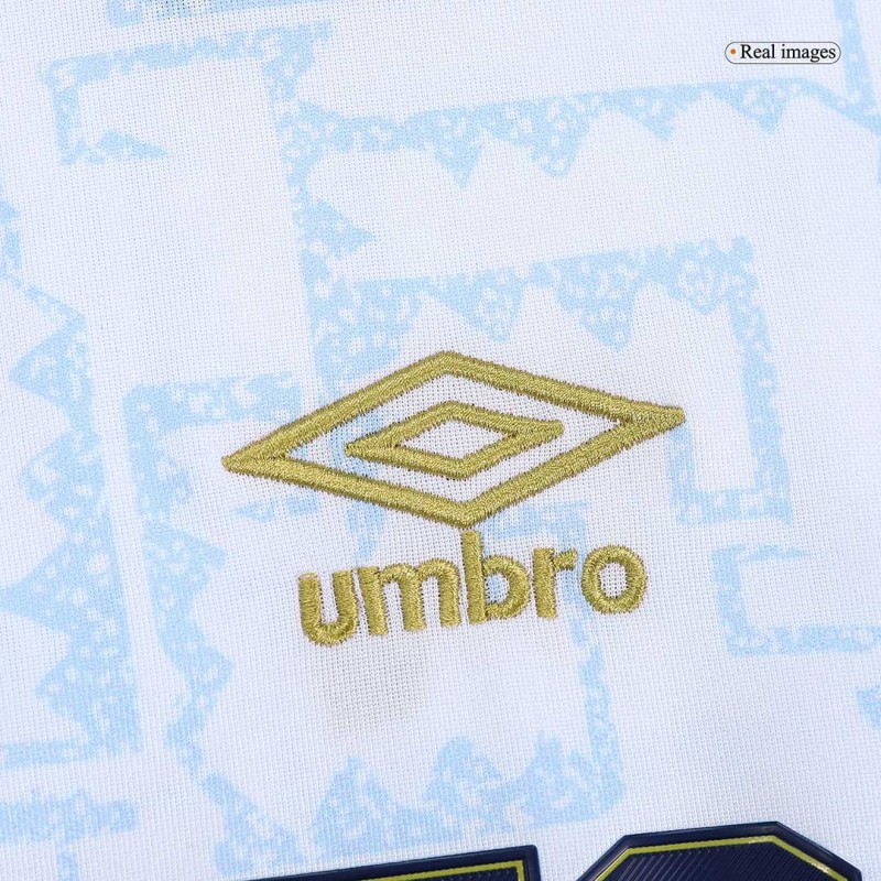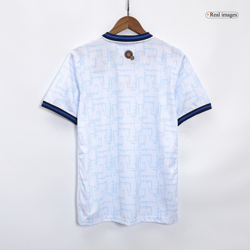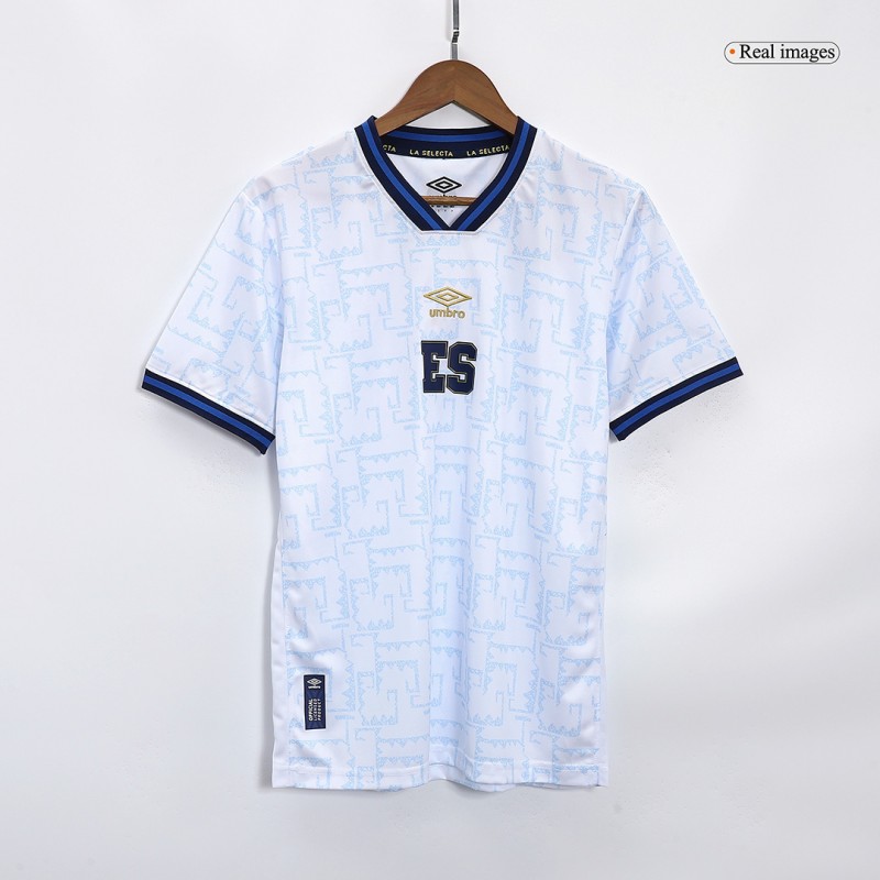 The Umbro El Salvador 23-24 away jersey has a white base and features a design of mayan textures which are commonly used in clothing, fabric, architecture and others.