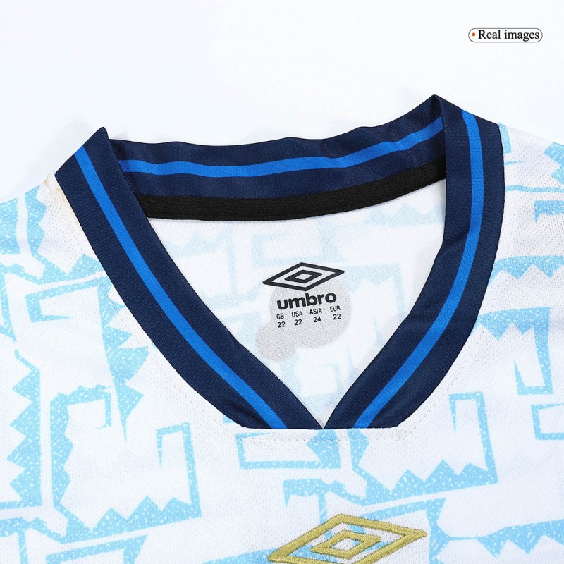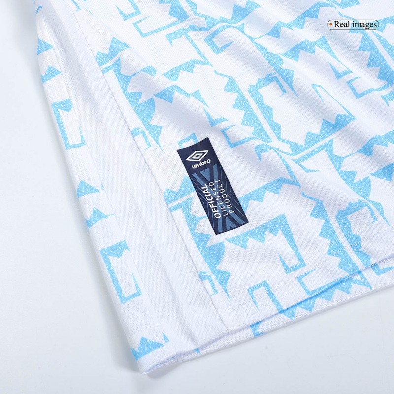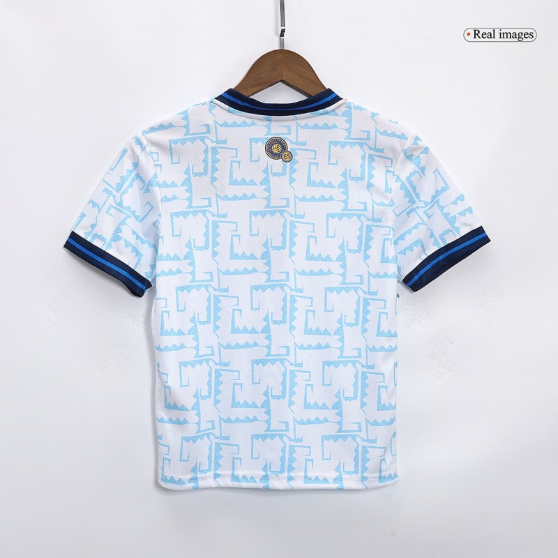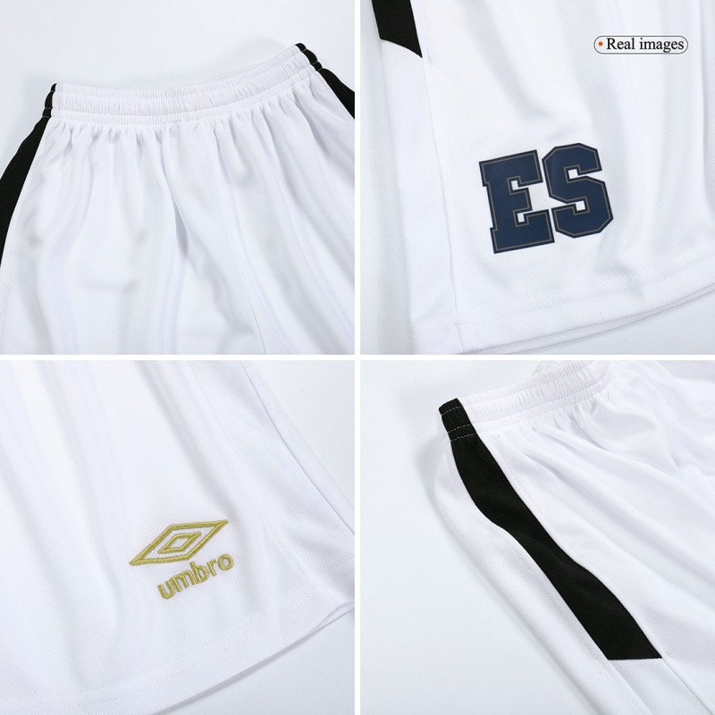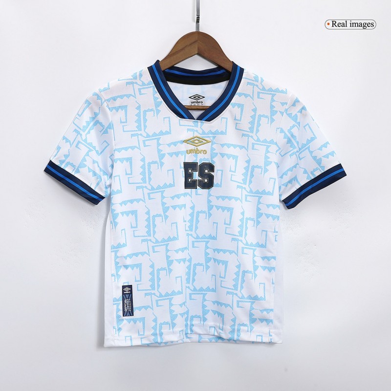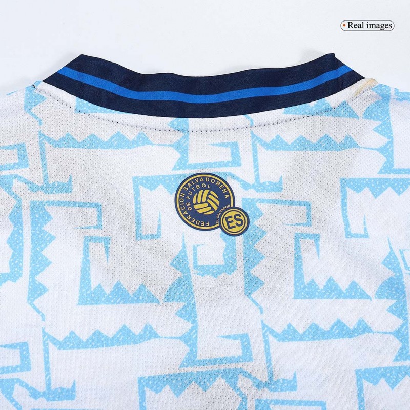 The Umbro El Salvador 23-24 away jersey has a white base and features a design of mayan textures which are commonly used in clothing, fabric, architecture and others.