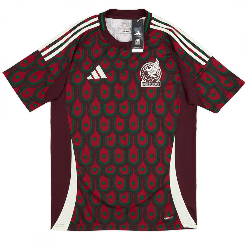 Instead of the usual green of recent years, Adidas Mexico 2024 jersey combines a maroon base with grey for logos.