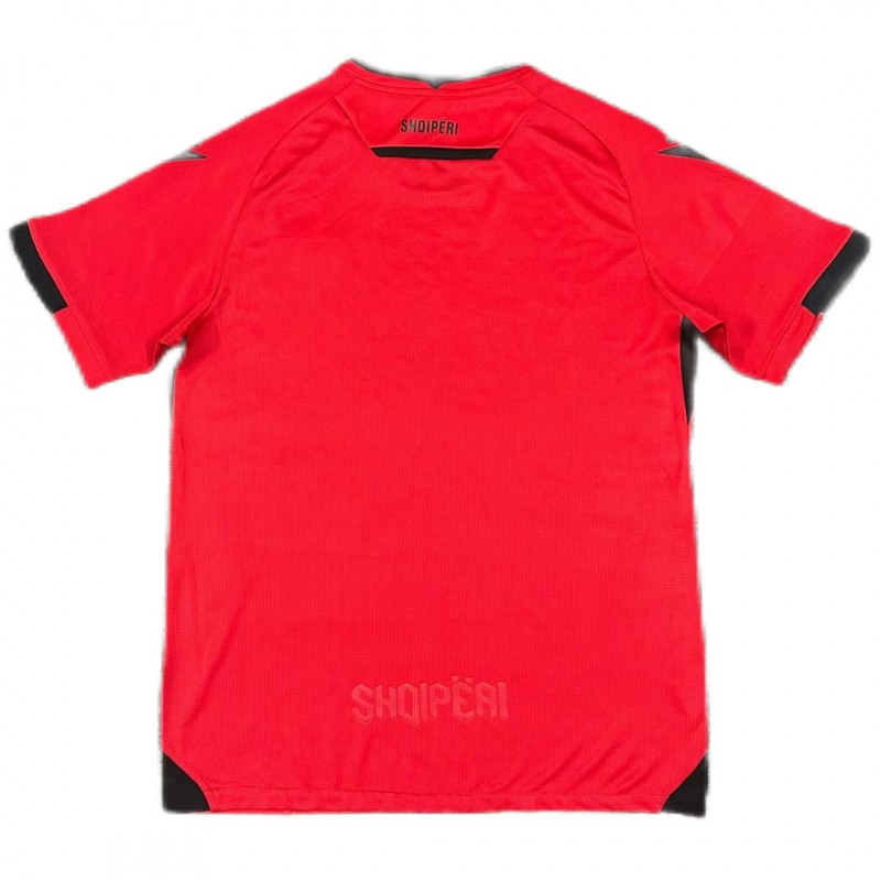 The word ‘SHQIPËRI’ (Albania) is printed in black behind the neck and reappears embossed in tone-on-tone at the bottom of the shirt.