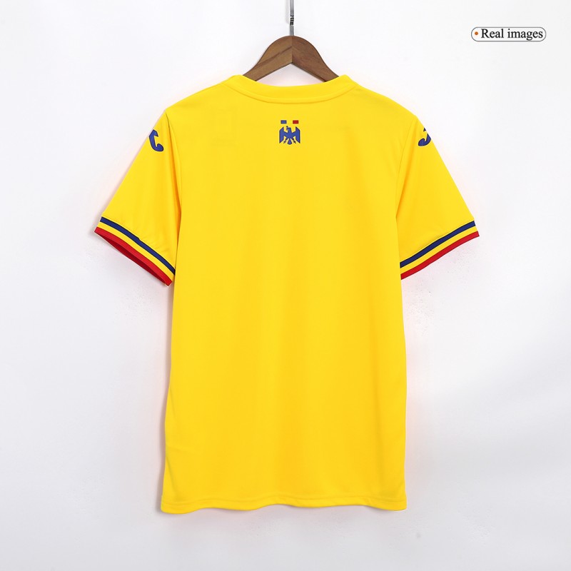 By having the belt like emblems on the waist, of the Joma Romania 2023 home football shirt, the Tricolorii hope that they can always battle like warriors on the pitch.