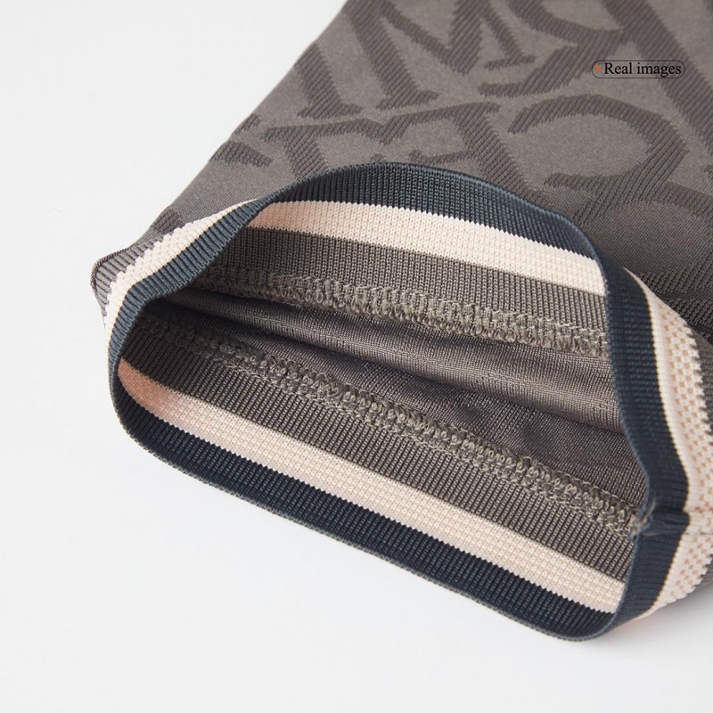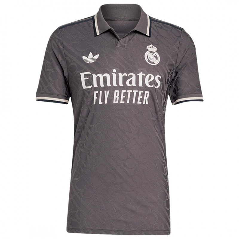 The Real Madrid 2024-25 third shirt has a charcoal brownish-grey (Charcoal) main color combined with 'RMCF' embossing all over the shirt for a unique look.