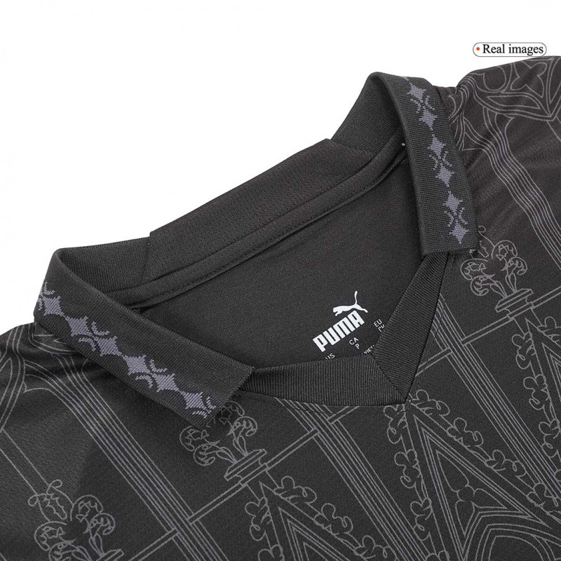 Milan's 2023-2024 Puma x Pleasures fourth jersey merges the street scenes of Los Angeles with the gothic architecture of Milan.