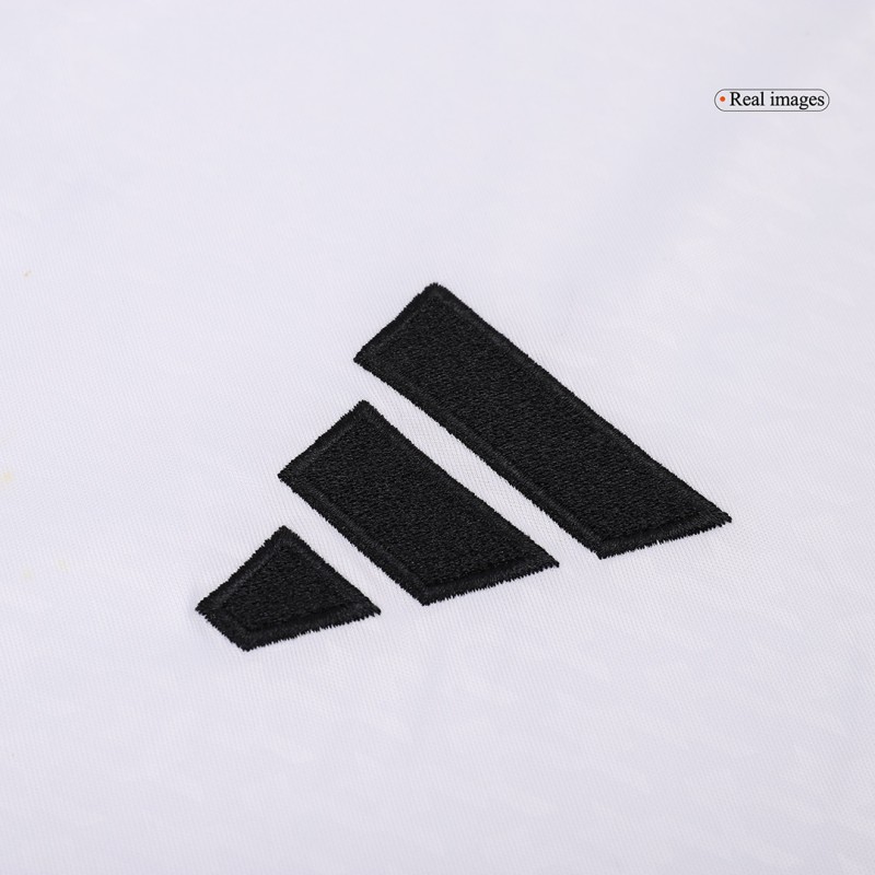 The Real Madrid Club de Fútbol 2024-25 home football shirt has the team's traditional white color, combined with black for the Three Stripes.
