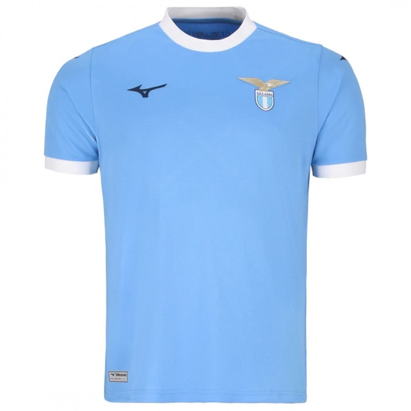 The Mizuno Società Sportiva Lazio 2025-26 home football shirt has the team's traditional sky blue, white, and navy colors.