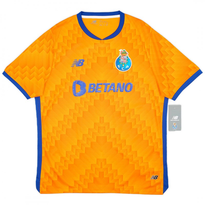 The Futebol Clube do Porto 2024-2025 away jersey is predominantly orange with a 1990s-inspired all-over graphic.