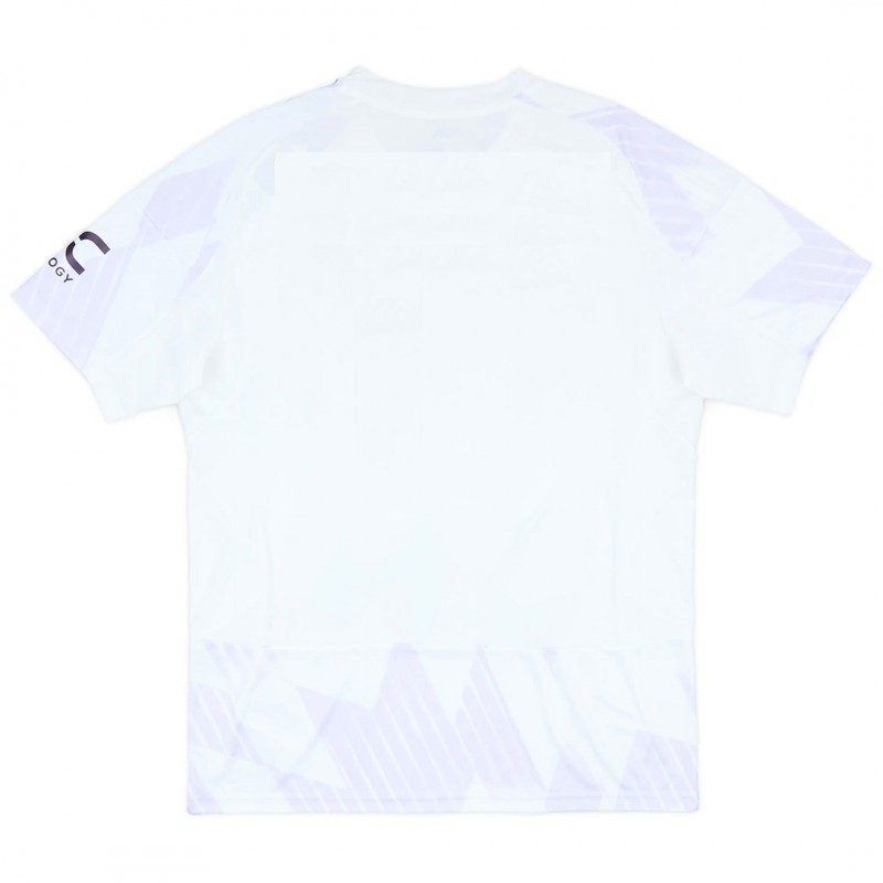 The Adidas Manchester United FC 2025-2026 away shirt is white and light lavender, combined with dark purple accents (Dark Plum).