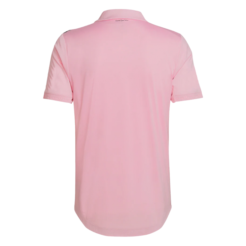 This picture shows the Messi Inter Miami 2022-23 home player version shirt, made by Adidas.