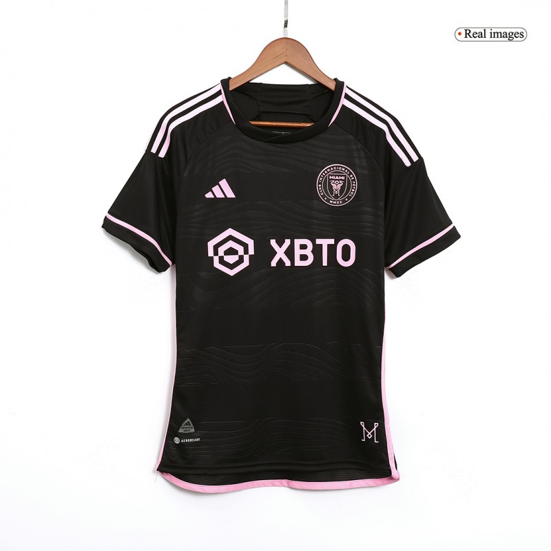 The Adidas Miami 2023 away shirt is predominantly black, with all other details and logos held exclusively in pink.