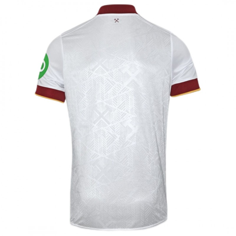 The West Ham United 2024-2025 third jersey is predominantly white, combined with a burgundy polo collar and burgundy cuffs with gold trim for a clean and elegant look.