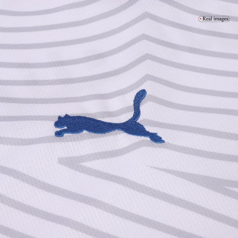 In contrast to last season's away kit, the sponsors match the colors of the shirt, creating a cleaner look.