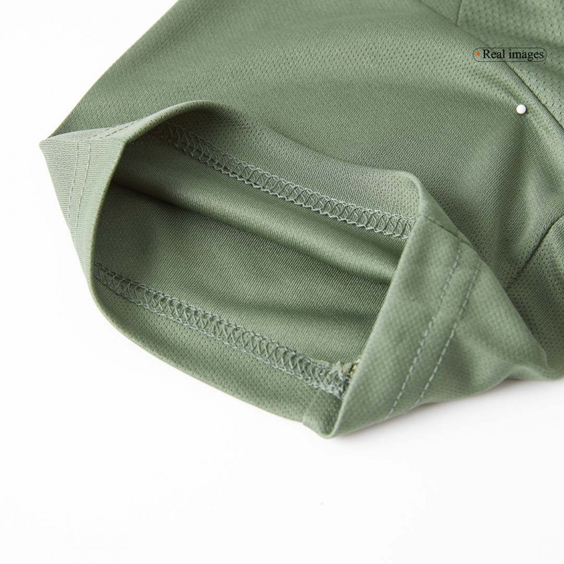 The Celtic FC 2024-25 third shirt is predominantly military green with unique camo graphics.