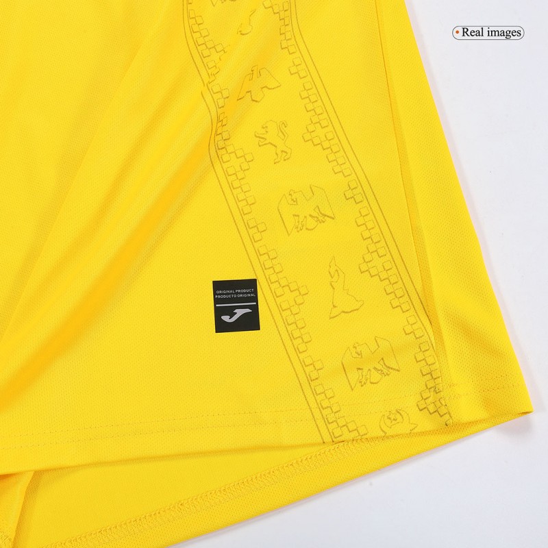 By having the belt like emblems on the waist, of the Joma Romania 2023 home football shirt, the Tricolorii hope that they can always battle like warriors on the pitch.