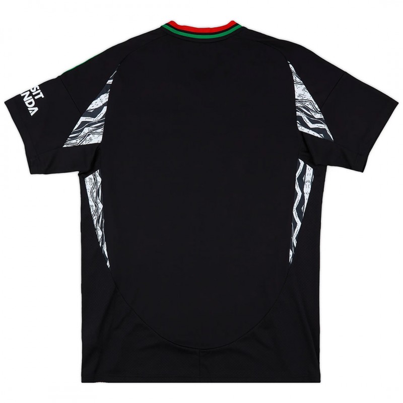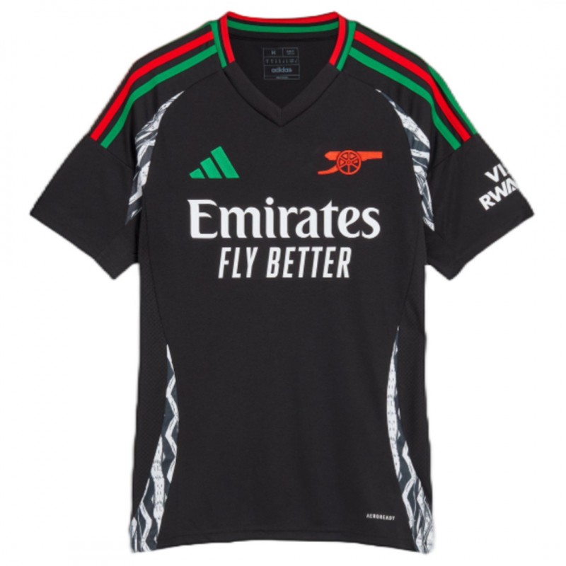 The Arsenal 2024-25 away jersey has a black base, combined with red and green as a homage to former Arsenal players David Rocastle and Ian Wright.