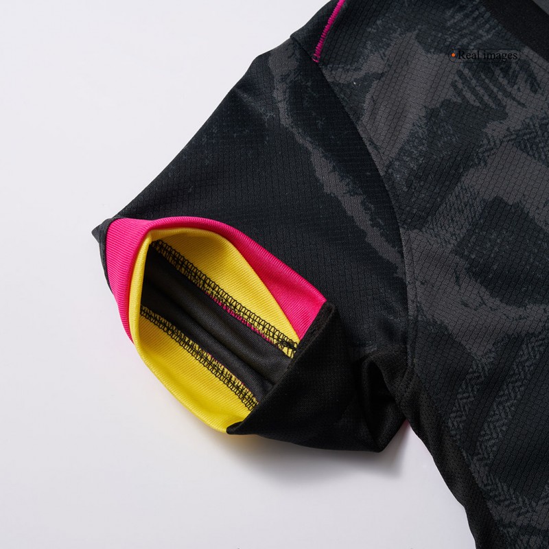 The Chelsea FC 2024-25 third jersey has grey and black as the main colors, combined with prominent yellow and pink accents.